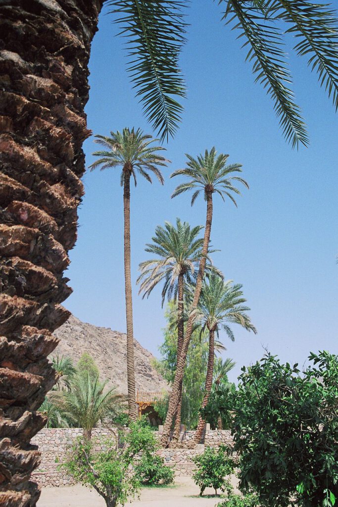 Unsere Oase ist grün, aber zerbrechlich. Wasserbecken glänzen zwischen Dattelpalmen. Lehmhäuser schmiegen sich aneinander. Um uns herum ist die Wüste. Nur Sand, Steine, Stille. Tagsüber glühende Hitze so dass die Luft über den Steinen flirrt. Nachts eisige Kälte.